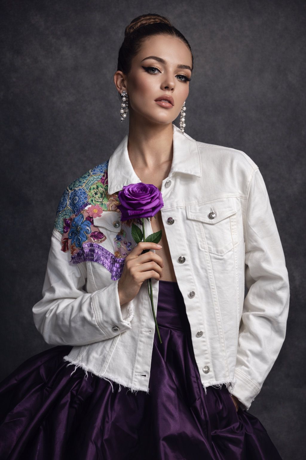 Rose Collection is a celebration of craftsmanship, femininity, and timeless beauty. Each piece is designed to make a statement, with handcrafted jackets and jeans that showcase meticulous handwork and refined detailing. Rich colors, delicate embellishments, and carefully constructed forms create a perfect harmony between modern fashion and artisanal tradition.